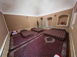 Tak Taku is a recently renovated, heritage listed guesthouse in the tiny village of Toudeshk Cho. It is surrounded by mud brick homes, near a beautiful mosque and a very old Haman, about an hour away from Esfahan on the way to Yazd. Tak Taku is family run. The guesthouse offers breakfast, lunch and dinner in traditional home cooked Iranian style. Rooms are available with own or shared bathroom. The rooms are surrounding a beautiful courtyard with fountain, offering a family room, open communal area with a small library and wifi. Iranian benches are also offering places to enjoy the peace and quiet of this area. Mohammad the owner can help with bus tickets, organise trips to the desert, camel riding, Gavkhuni Salt Lake Trip, and camping in the sands in the appropriate season.