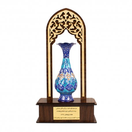 تندیس گلدان میناکاری-هدیه تبلیغاتی----ابعاد پایه چوبی تندیس 7 در 16 در 31 سانتی متر