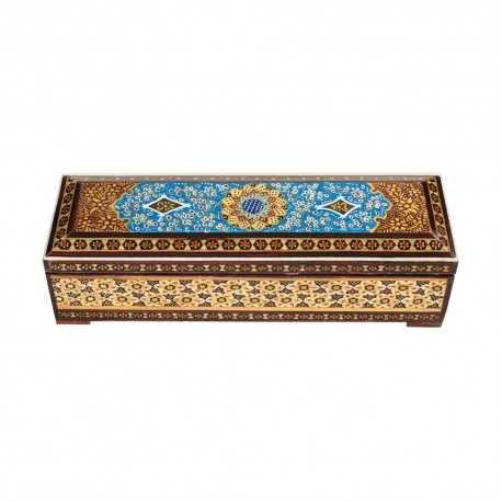 قلمدان لولایی خاتم با نقاشی تذهیب ----طول جعبه 20 سانتی متر