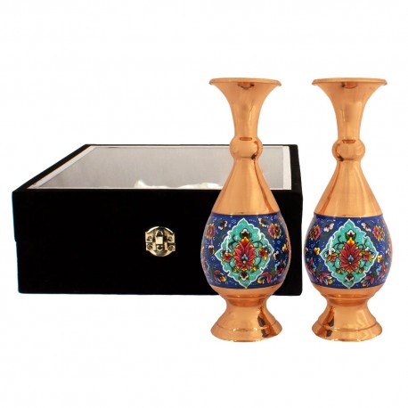 ست دوتایی گلدان 20 سانتی متری مس و نقاشی با جعبه مخمل