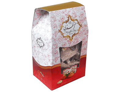 گز لقمه ای حبه ای بادامی 33 درصد----وزن خالص 200 گرم----جعبه مقوایی