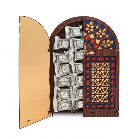گز لقمه ای 40 درصد پسته ای ----وزن خالص 400 گرم---جعبه خانه چوبی