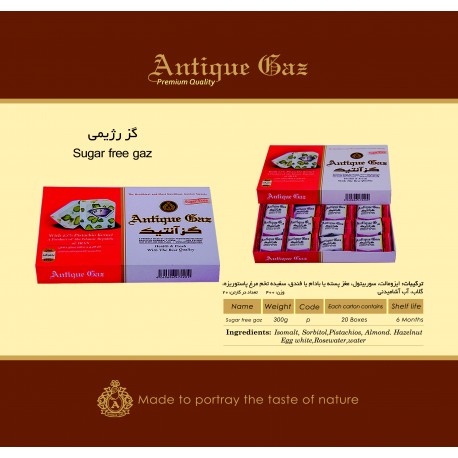 گز رژیمی بدون قند پسته 25 درصد----جعبه کارتونی---وزن خالص 300 گرم